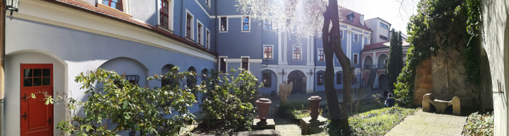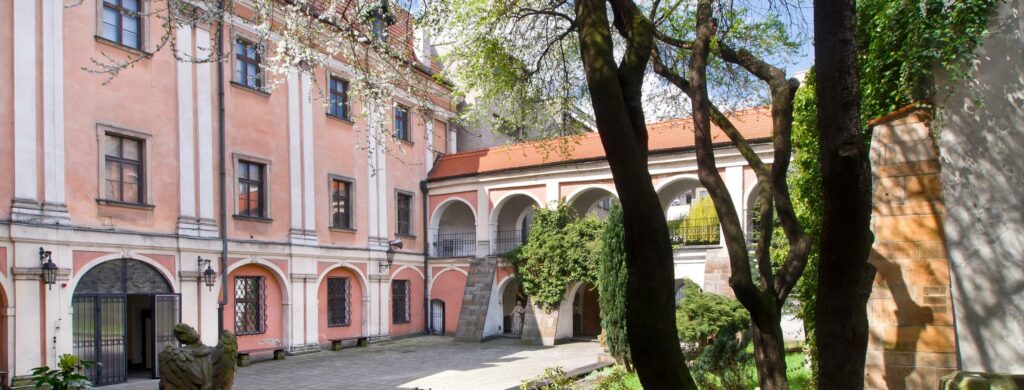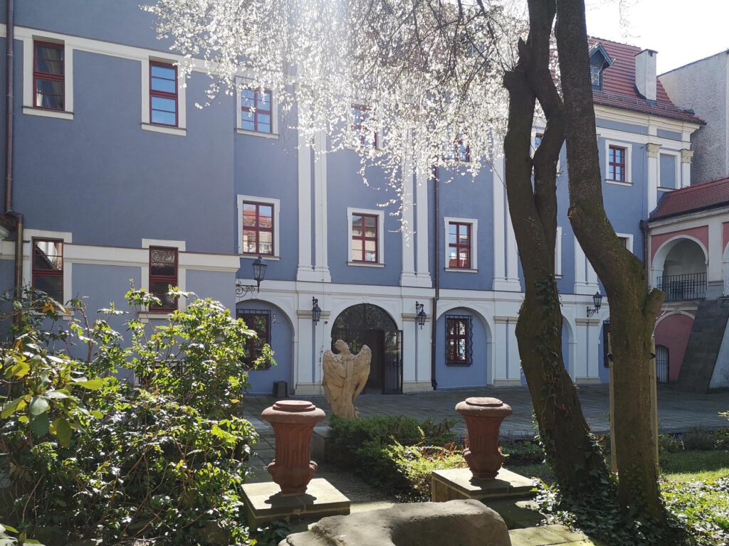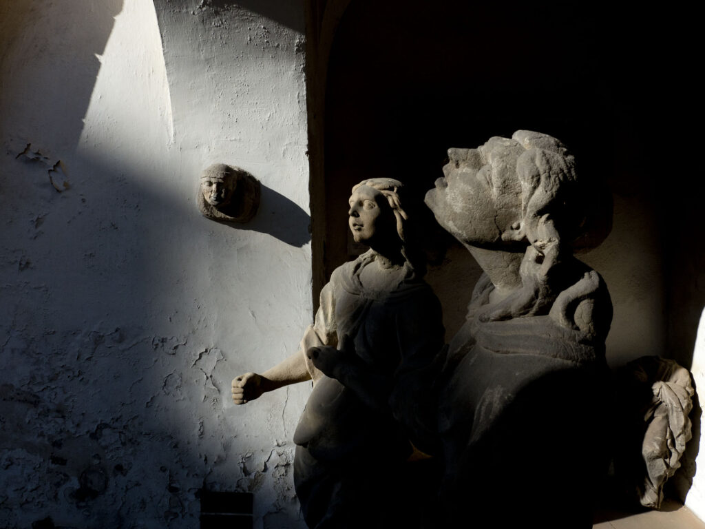 Na dziedzińcu i w podcieniach zaaranżowano lapidarium, gromadzące fragmenty kamiennych detali, portali, kartusze herbowe, rzeźby aniołów stworzone przez Michaela Klahra Starszego oraz inne elementy zabytkowe, pochodzące głównie z nieistniejących już kłodzkich kamienic.