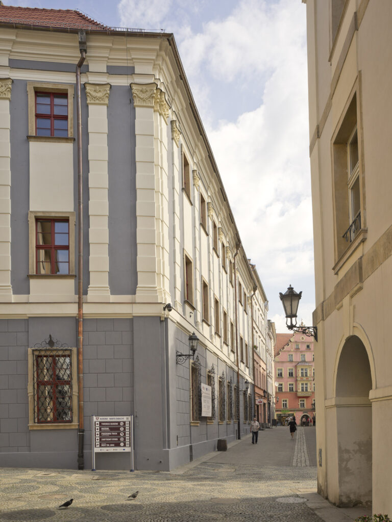 Parter ozdobiony jest boniowaniem, a kolejne piętra podzielone są pilastrami w wielkim porządku. Okna ujęte w piaskowcowe opaski, na parterze od frontu zaopatrzone w barokowe kraty.