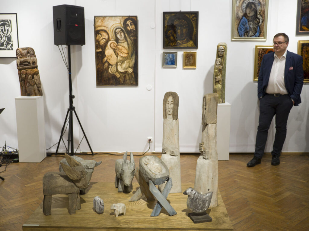 Surowe, duże kawałki lipowego drewna, często prawie metrowe, w wielu miejscach nieopracowane, gdzieniegdzie popękane i szorstkie, z widocznymi śladami dłuta Artysta przekształcał w pogodne, zadumane postaci Chrystusa, aniołów i zwierząt. Ascetyczne, pełne prostoty figury wspólnie tworzą niezwykłą kapelę złożoną z muzykujących aniołów, Królów Dawidów wraz z towarzyszącymi im ptakami, osiołkami, wołami i barankami. Te poczciwe postaci o przymkniętych oczach, sprawiają wrażenie zasłuchanych w muzyce, zagłębionych w modlitwie.
